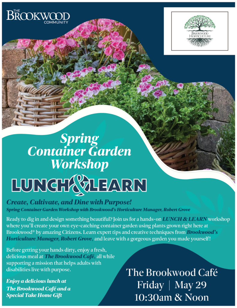 For each $15 two-course lunch sold at The Brookwood Café, we will donate one dollar. The food bank will provide three meals from this donation!